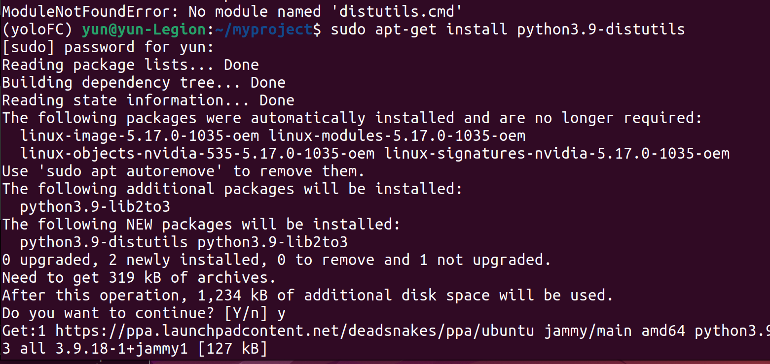 sudo apt-get install python3.8-distutils # ์ค๊ฐ์ y ๋๋ฌ์ฃผ์ธ์