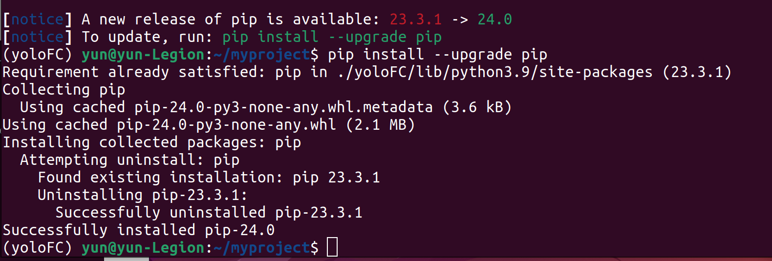 $ virtualenv yoloFC --python=python3.9