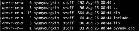 $ python3 -m venv <๊ฐ์ํ๊ฒฝ์ด๋ฆ>