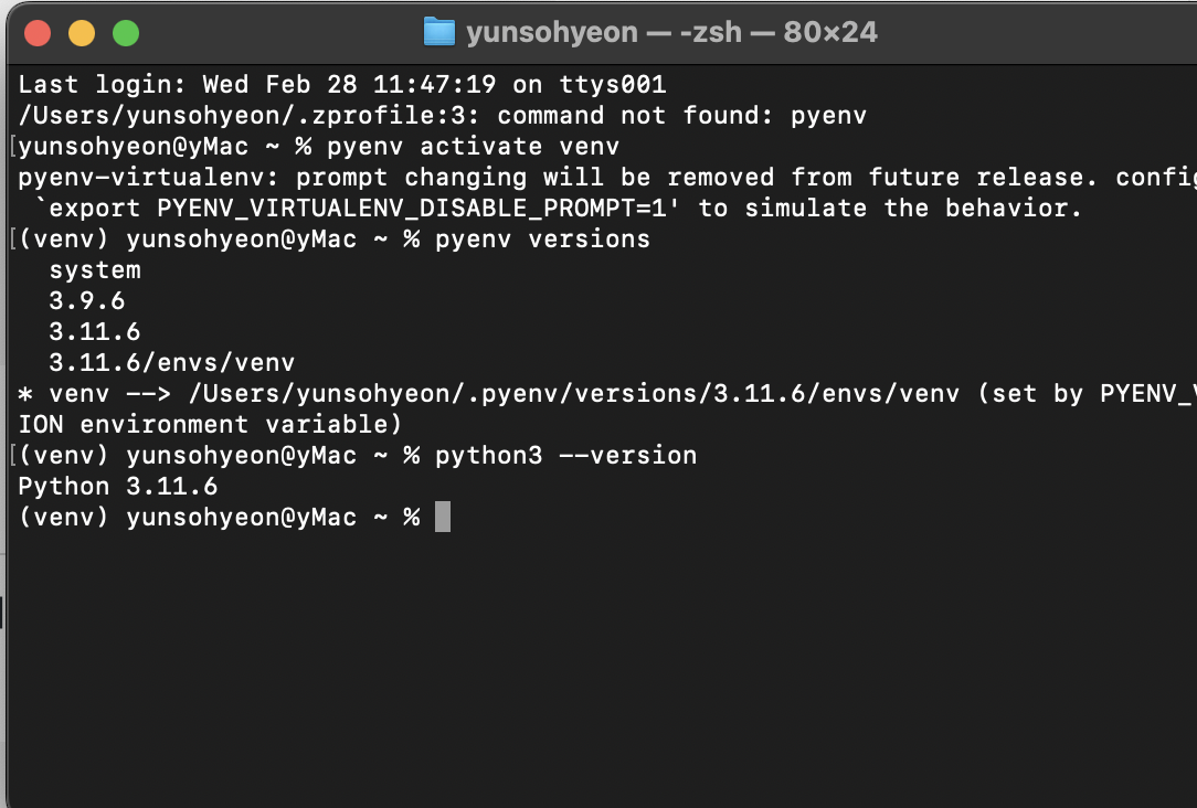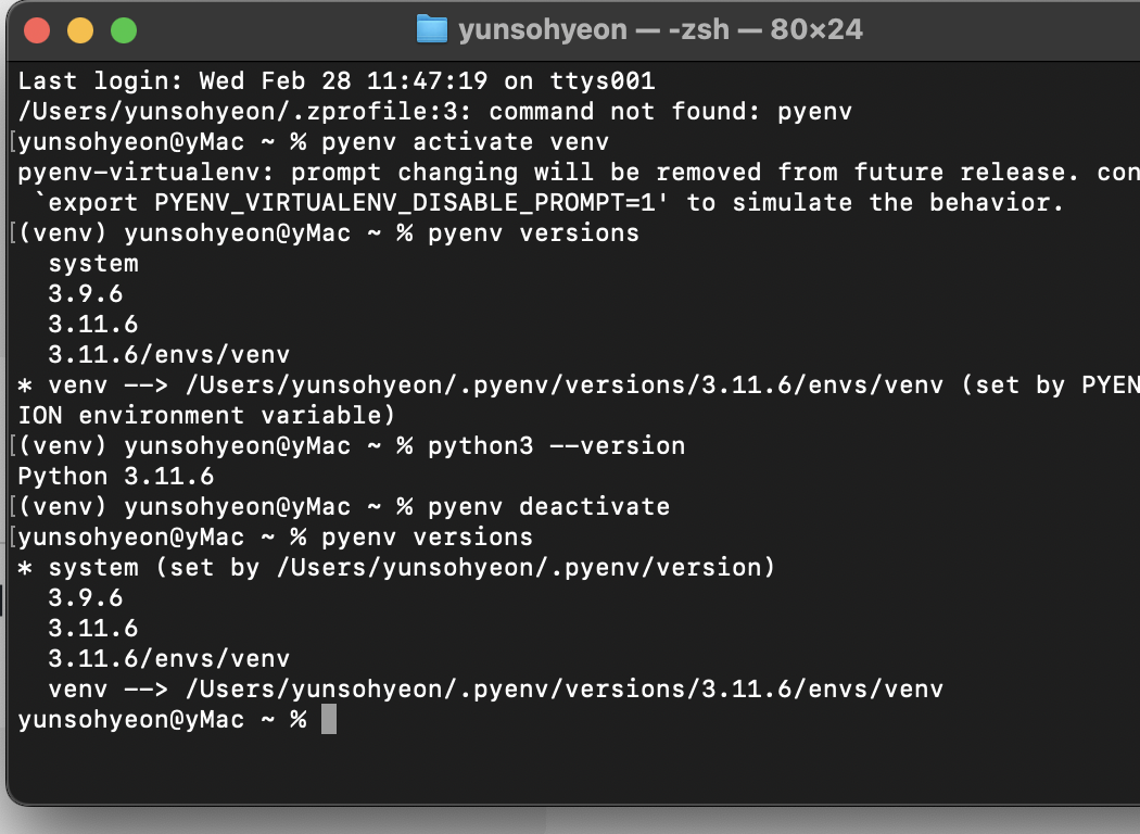 pyenv activate ์คํ์ “Failed to activate virtualenv.” ์๋ฌ ๋ฉ์์ง ํด๊ฒฐ๋ฒ