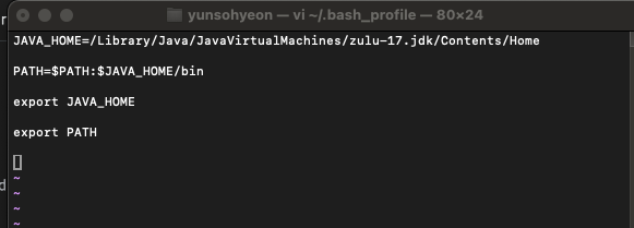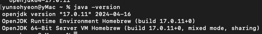 2024.04.24 - [Back-end/Java] - [Java] Mac์ Java JDK 17 ์ค์น, ๋ค์ด๋ก๋ ํ๊ฒฝ๋ณ์ ์ค์