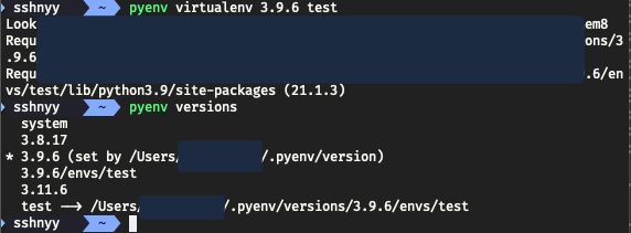 - ๊ฐ์ํ๊ฒฝ ์์ฑ-๋ฒ์ ์ง์ : pyenv virtualenv 3.9.6 test