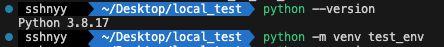 1. ๊ฐ์ํ๊ฒฝ ํด๋ ์์ฑ: python -m venv test_env