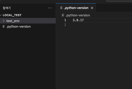 - ๋ฒ์ ์ง์ : pyenv local 3.8.17