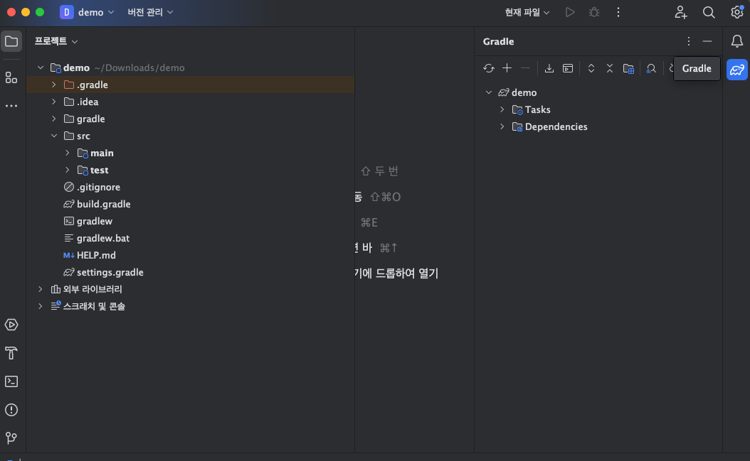 ์ฑ๊ณต์ ์ผ๋ก Open ๋์๋ค๋ฉด ์ฐ์ธก ํญ์ "Gradle" ๋๋ "Maven" ํญ์ด ์์ฑ๋ฉ๋๋ค.