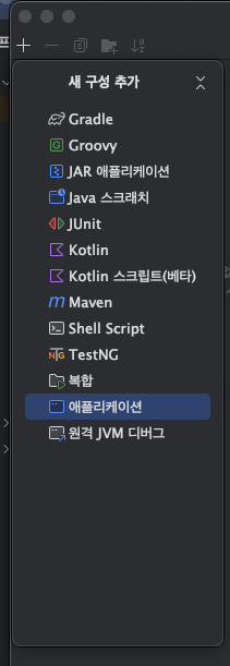 "+" ๋ฒํผ ํด๋ฆญ > Application ์ ์ ํํฉ๋๋ค.