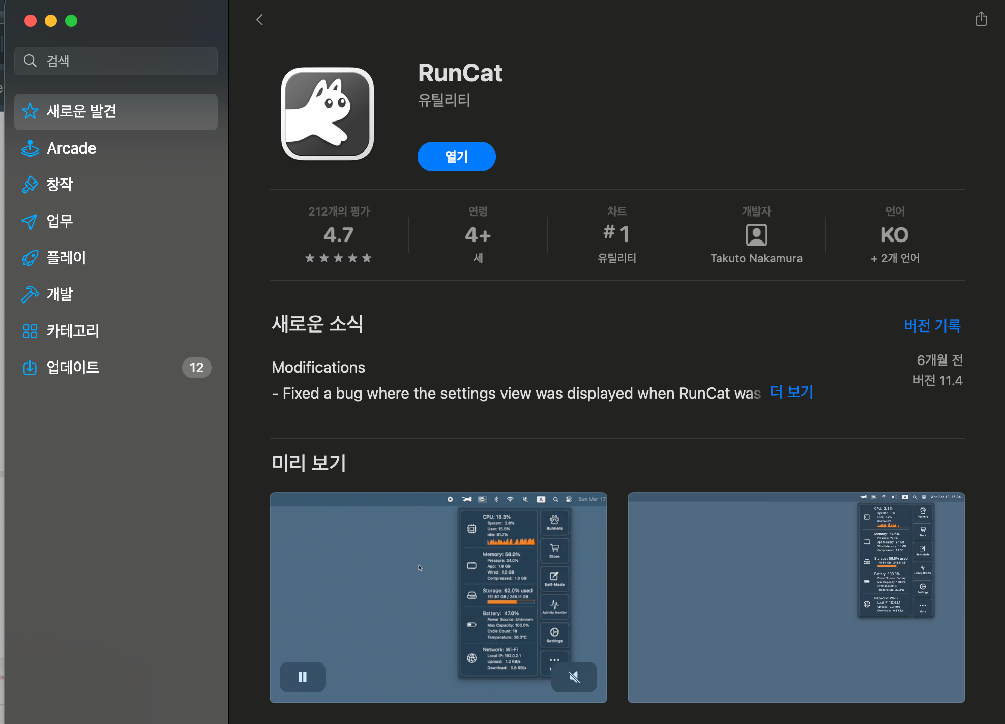 https://apps.apple.com/kr/app/runcat/id1429033973?mt=12