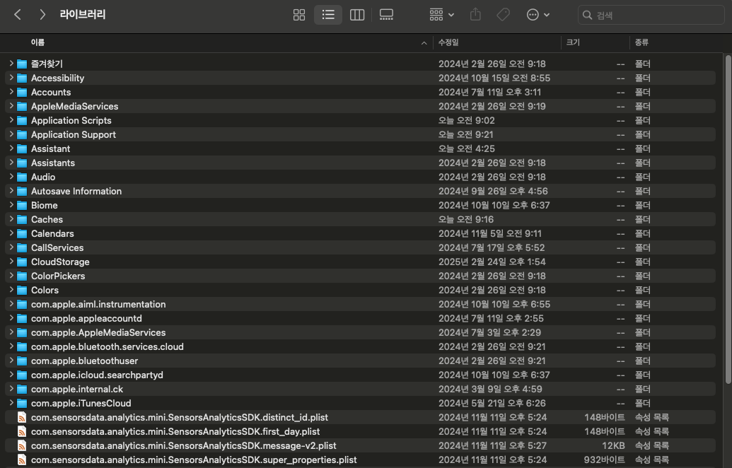 - "๋ผ์ด๋ธ๋ฌ๋ฆฌ" ํด๋ฆญ → ~/Library ํด๋๋ก ์ด๋๋จ