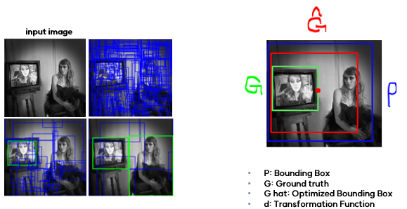 목표: traininng: P를 G에 맞춰가며 transform, 객체를 더 잘 인식하기 위해 bounding box 조절(마지막에 수행됨)