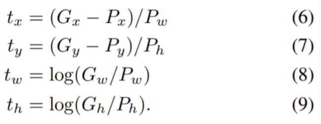 Bounding Box regression은 지역화(localization) 성능을 높이기 위해 사용되므로 Bounding Box를 도출하는 수식을 살펴보겠습니다.